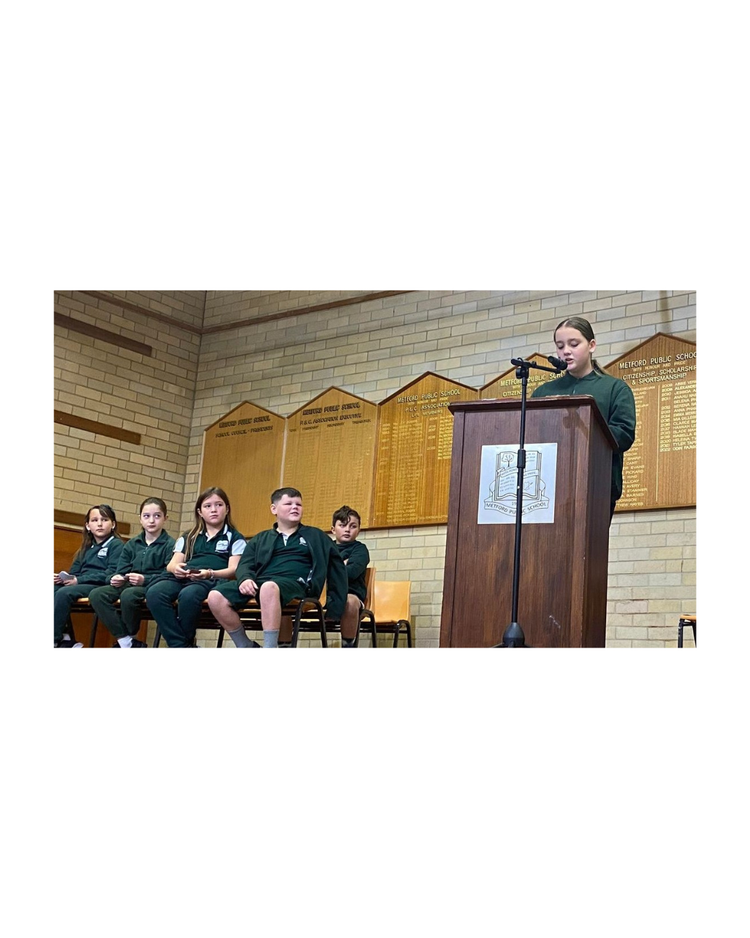 At Metford Public School, all students from Kindergarten to Year 6 are given the opportunity to participate in the Premier’s Public Speaking Challenge. Students learn to communicate their ideas with clarity, confidence, and purpose. They develop skills in speech writing, persuasive speaking, and effective delivery while exploring a range of contemporary and thought-provoking topics. The program encourages creativity, critical thinking, and self-expression in a supportive and engaging environment. Students engage in prepared and impromptu speaking which supports their growth in confidence and the ability to speak in front of large audiences. Those who show a particular aptitude in this area are also able to demonstrate these skills at regional events alongside peers from other schools.